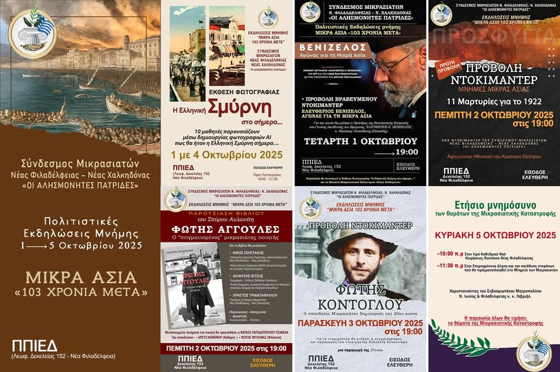 Εκδηλώσεις Μνήμης με τίτλο “ΜΙΚΡΑ ΑΣΙΑ 103 ΧΡΟΝΙΑ ΜΕΤΑ” που θα πραγματοποιηθούν 1 με 5 Οκτωβρίου 2025 στο